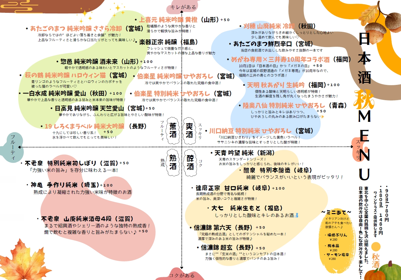 東北を中心に全国の銘柄を沢山揃えておりますので、ぜひこの機会にさまざまな味わいをお楽しみください。